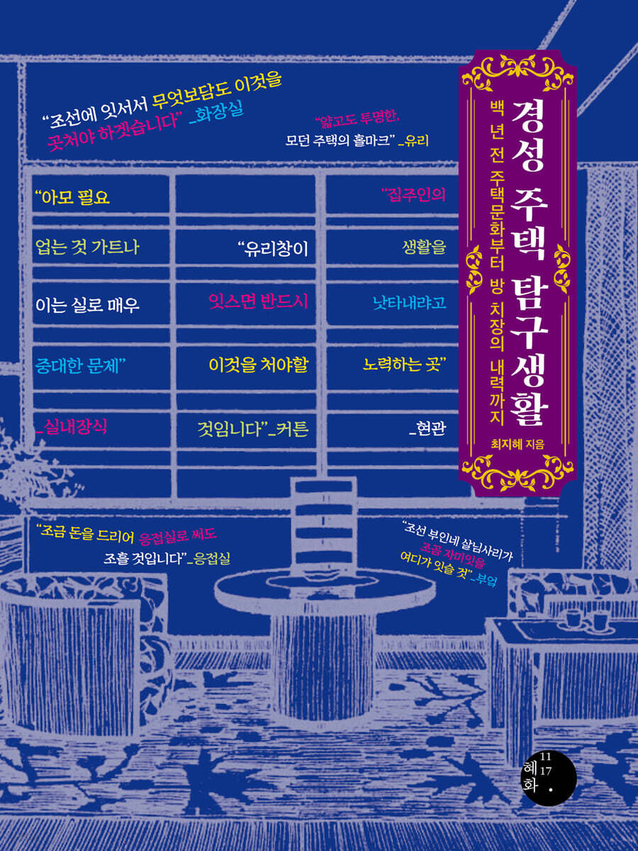 이미 『경성 백화점 상품 박물지』를 통해 한 시대에 대한 전문가로서의 조예는 물론 학자로서의 집요함과 성실함을 증명한 그는 이번에도 백 년 전 경성의 주택에 대한 조예와 집요함, 성실함을 토대로 이전에 없던 새로운 유형의 책을 독자 앞에 상재했다.