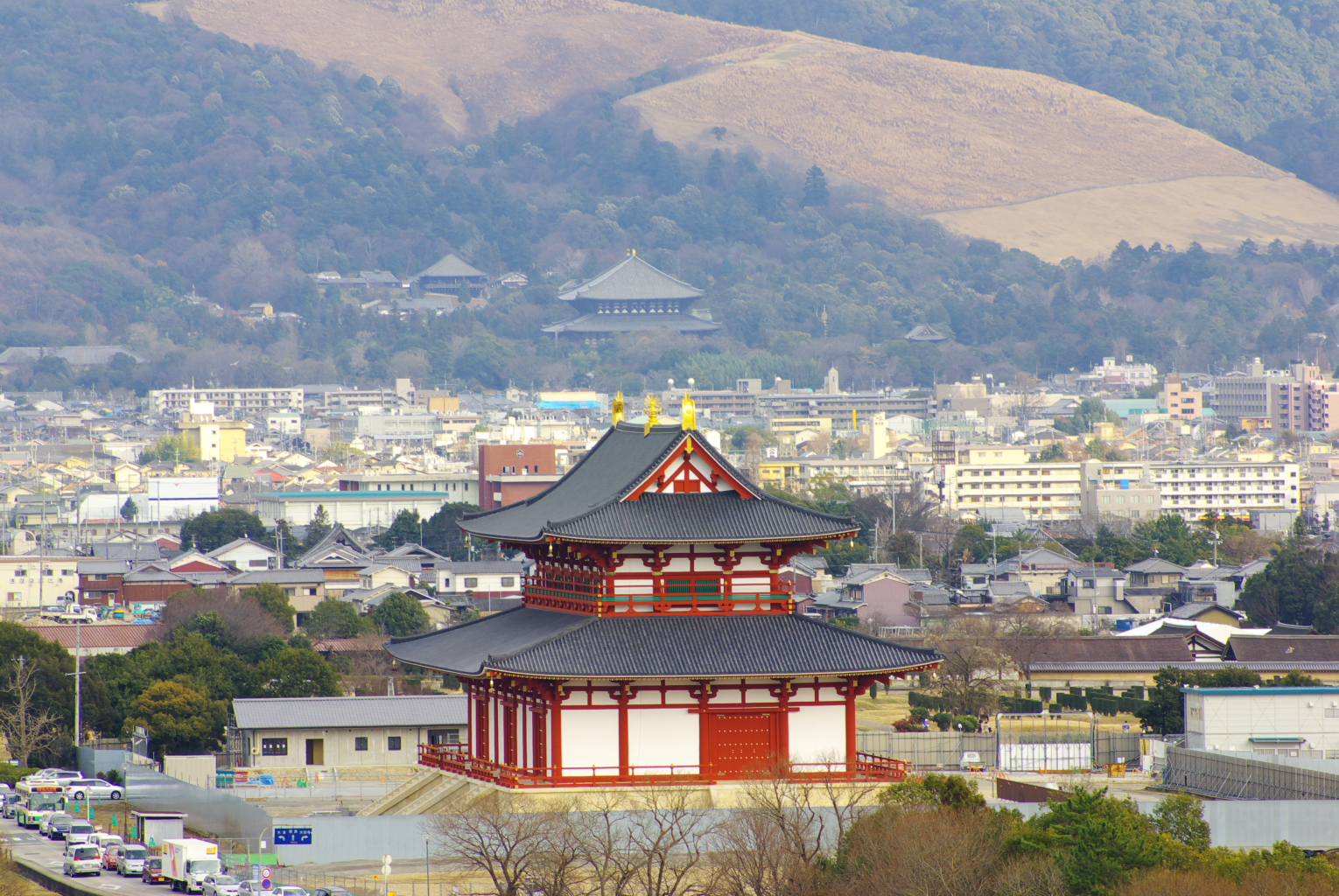 나라 시의 위성 사진, 왼쪽이 예전의 황궁터이다