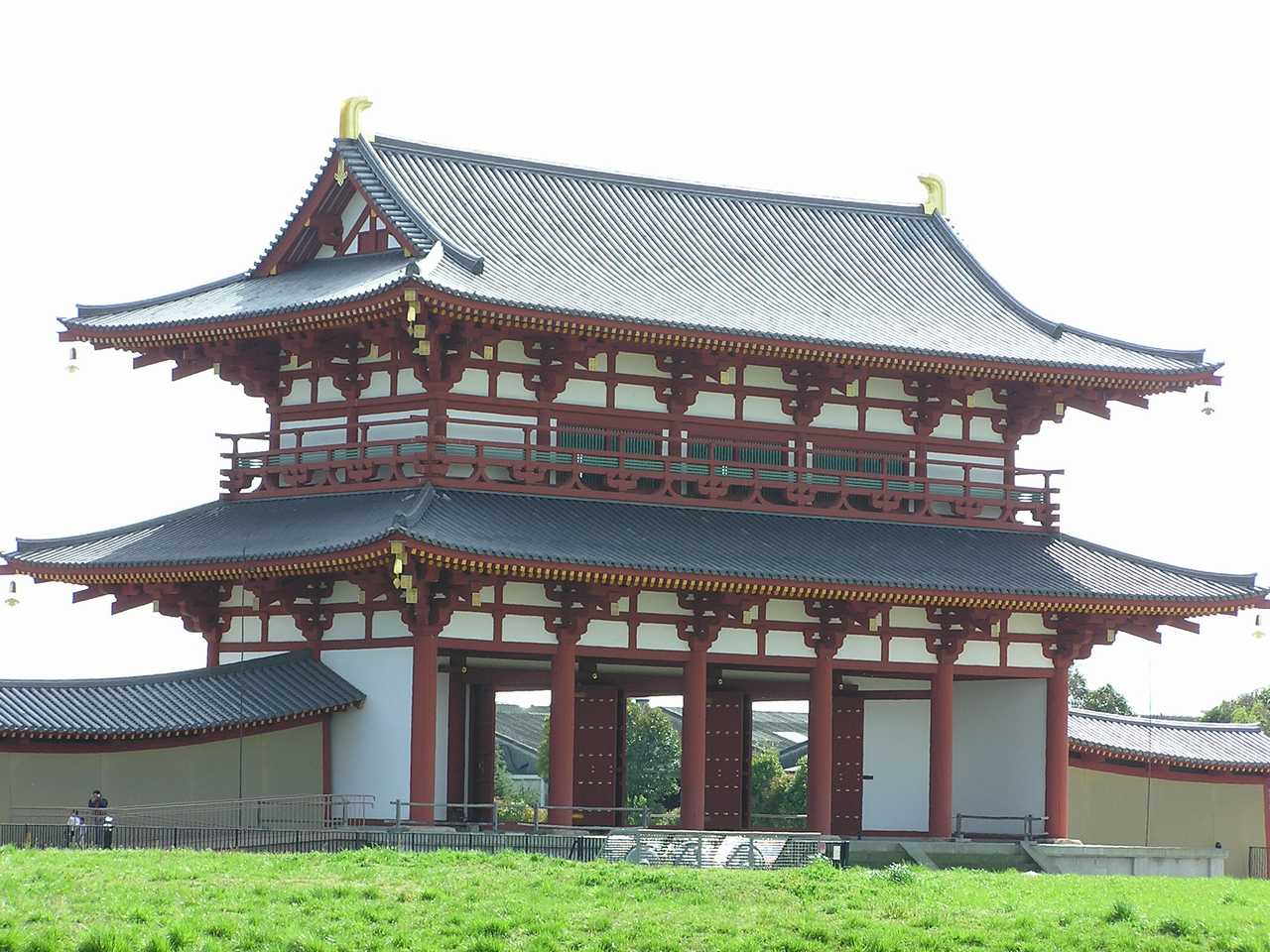 주변은 5m 정도의 큰 담이 둘러져 있었고 주작문(朱雀門)을 비롯해서 호족의 성씨에서 그 이름을 따온 12개의 문이 설치되어 관리들은 각자의 문으로 드나들었다.